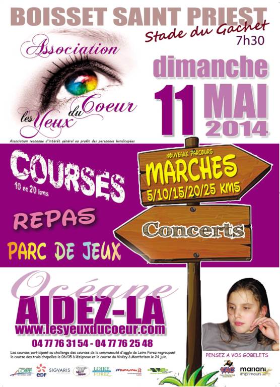 Veuillez trouver ci-joint l'affiche de la journée des yeux du coeur qui aura lieu le dimanche 11 mai 2014 au stade du Gachet à partir de 7 h 30 à Boisset St Priest.
